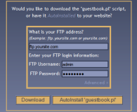 Step 3![]() ...they select "AutoInstall" and enter their website's upload (ftp) address, username, and password... |
